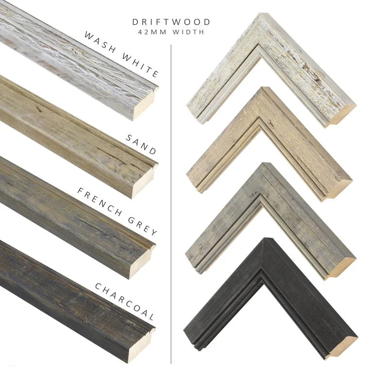 This will also be a great time to decide if you require any mounting or framing. We use a beautiful Driftwood moulding available in four colours - Charcoal, French Grey, Sand & Wash White.