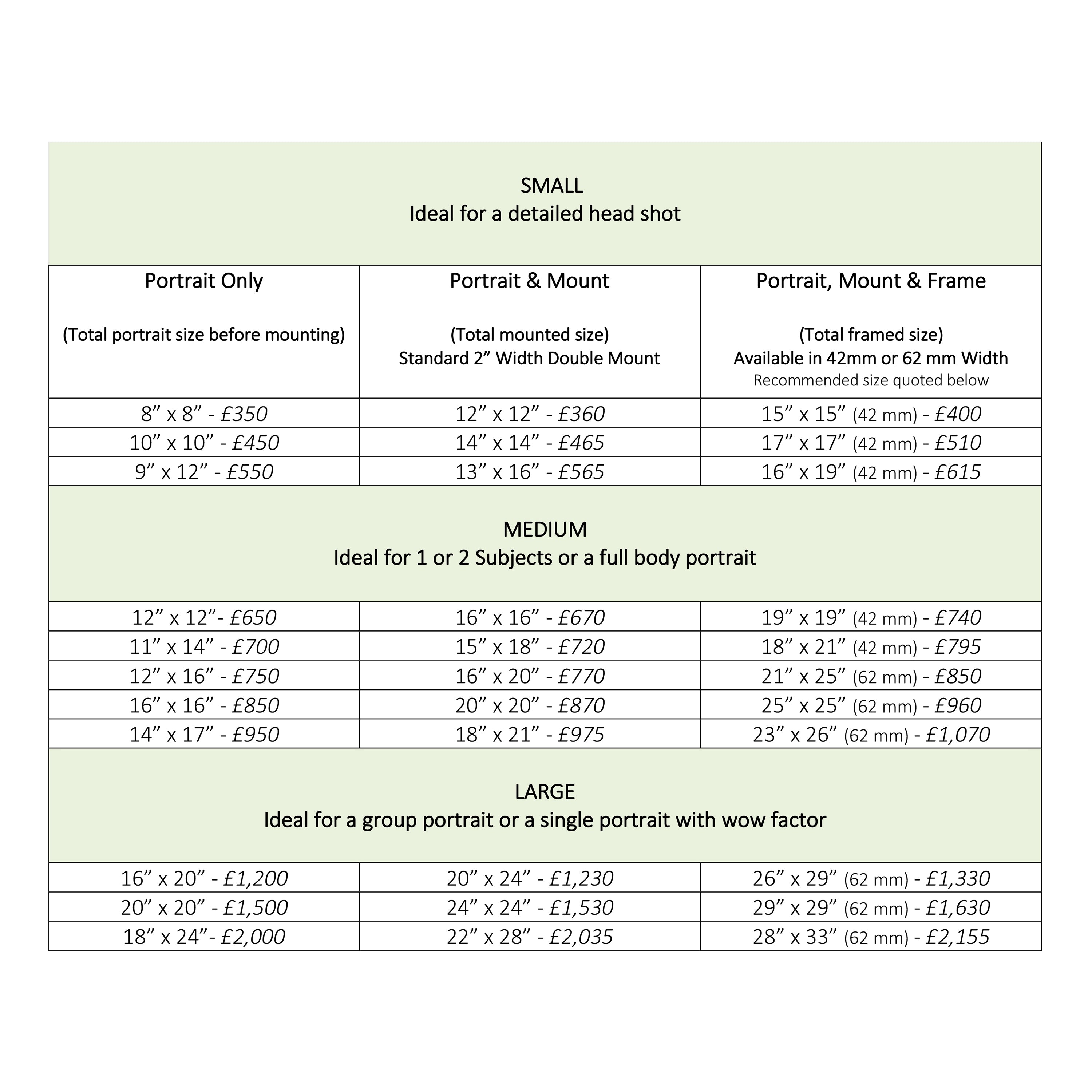 Portrait Only or Portrait & Mount £10.00